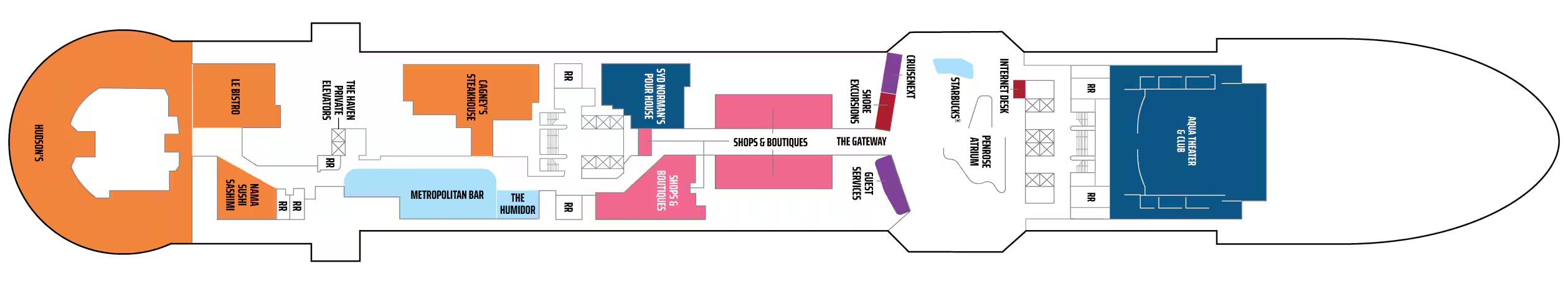 Returning aboard is our signature steakhouse, Cagney's, elevated with extended seating and all-new décor inspired by 20th-century modernist architecture. Serving premium angus beef at this elegant fan favourite, sip a perfectly mixed cocktail and don't forget to order our exceptional seafood!