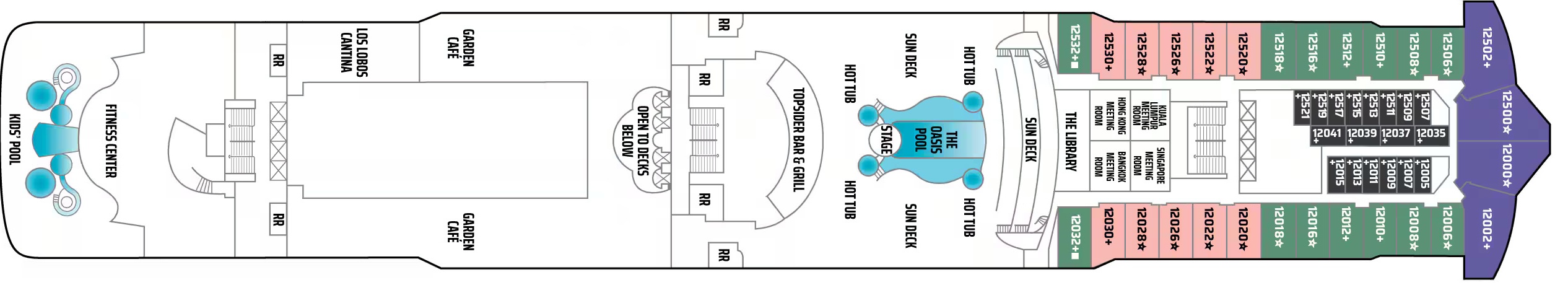 Located poolside at the Oasis Pool is Topsiders, a full bar in close proximity to ample sunning area and hot tubs. It's all part of cruising's total resort experience.