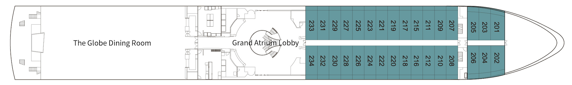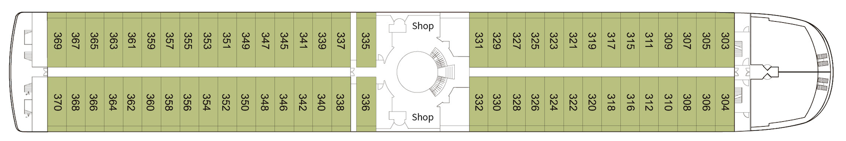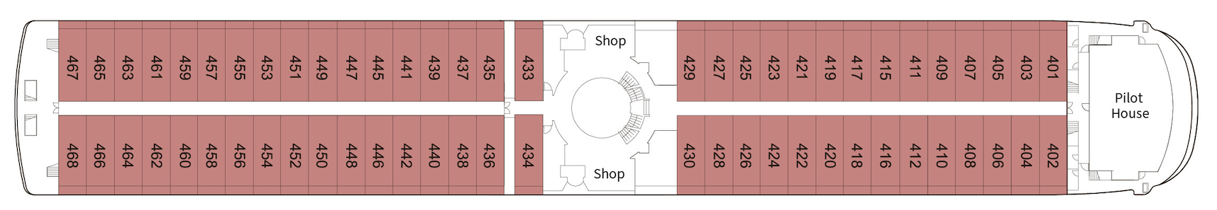 Bridge Deck is home to a selection of deluxe cabins. It also features a selection of gift shops, perfect for browsing souvenirs.