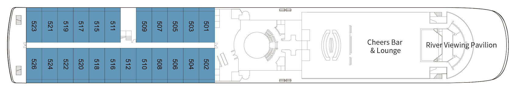 The sun deck features a spacious open-air deck at the bow of the ship, complete with sun loungers - it's the perfect place to watch the scenery change along the riverbanks. Inside, you'll find a quiet spot to read in the library, or, for a more active activity, you can work up a sweat in the onboard gym.