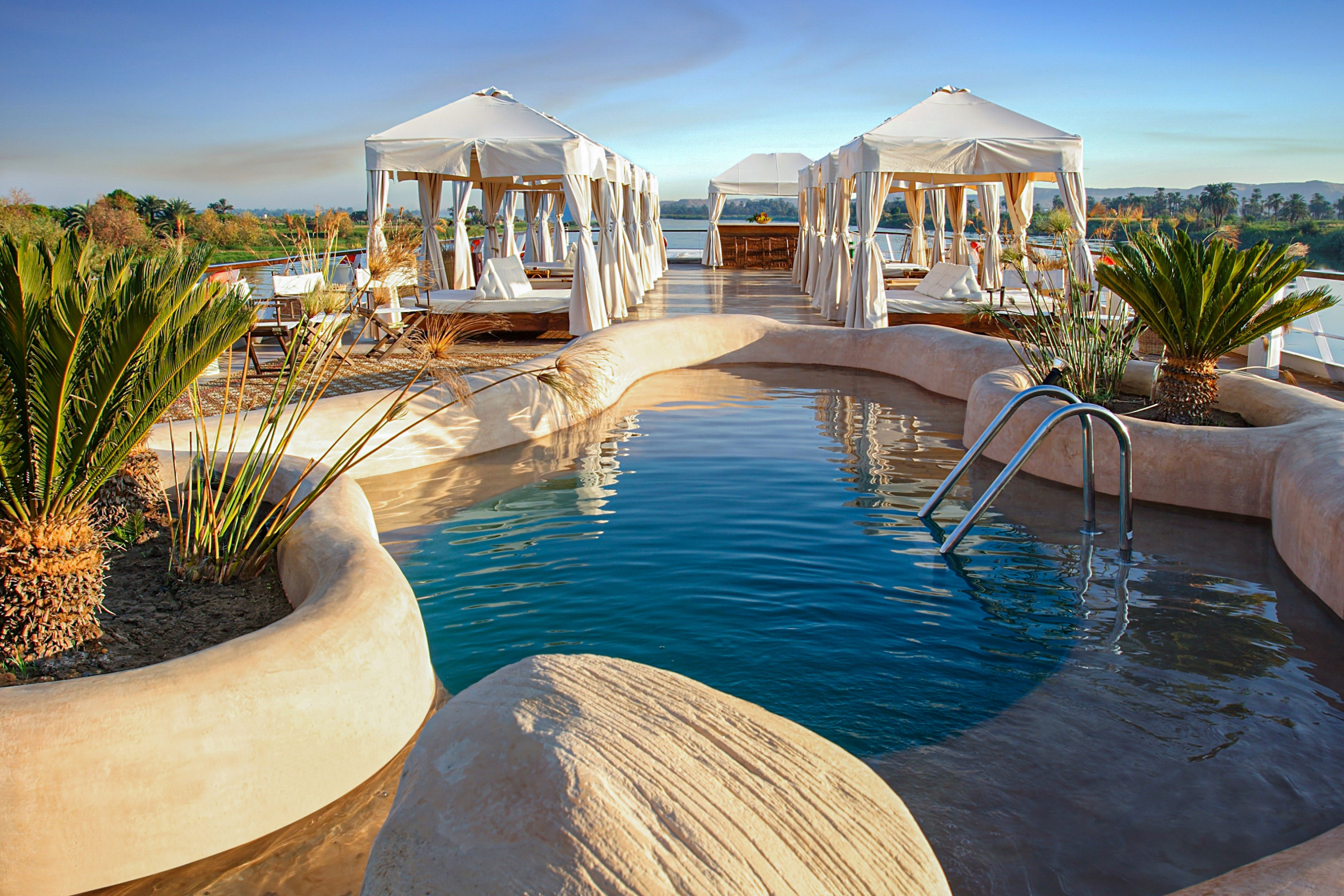 Evoking the heyday of Egypt’s past, the Sanctuary Sun Boat III has several times been voted among the top 100 most beautiful boats in the world by Condé Nast readers. Modelled on the opulent era of the 20s and 30s, this graceful cruiser has exquisite facilities from delicious gourmet dining in the restaurant to sipping refreshing cocktails around the pool area on the sun deck, or enjoying afternoon tea in the stunning lounge. The Sanctuary Sun Boat III has 18 beautifully designed unique cabins which include two royal suites and two presidential suites.
