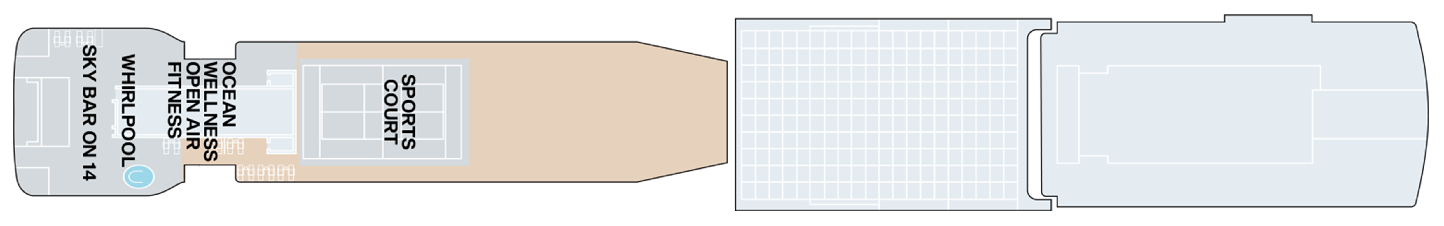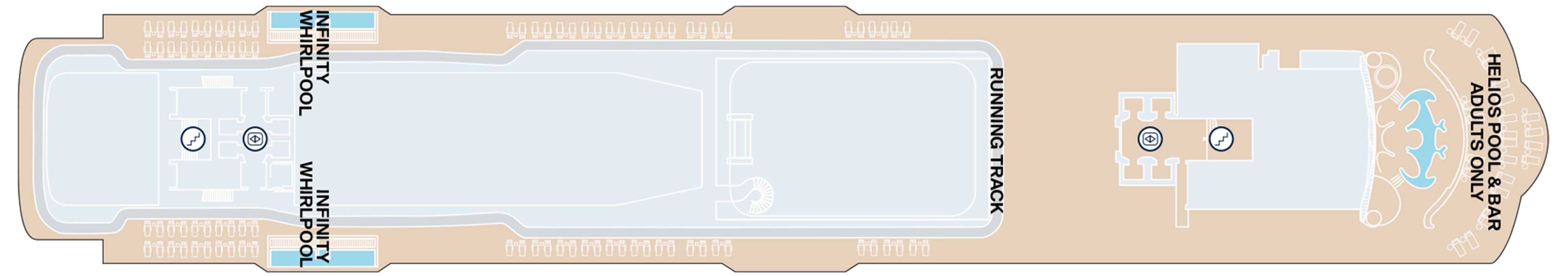 - RUNNING TRACK: A 360º track circling the ship, where runners can enjoy commanding ocean views with every lap.