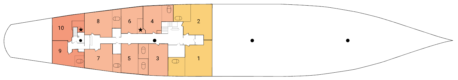 If the weather is fine, you might like to sit on the lido deck at lunch time. The tasty snacks served at the buffet in the open air will both whet and satisfy your appetite. At certain times, our onboard pianist will provide pleasant background music to your conversations. The lido bar is a cosy place to wind down the evening. Quite befitting for any traditional sailing ship, the atmosphere can also get rather vibrant when the Crew Shanty Choir makes an appearance.