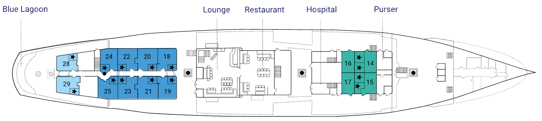 - Category 2 Cabins (Twin Bed convertible to Double Bed)