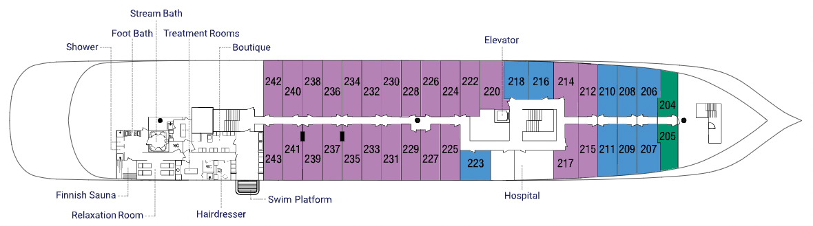 Select any deck plan to see more details. Once clicked, hover over the image to zoom.Ship Categories
