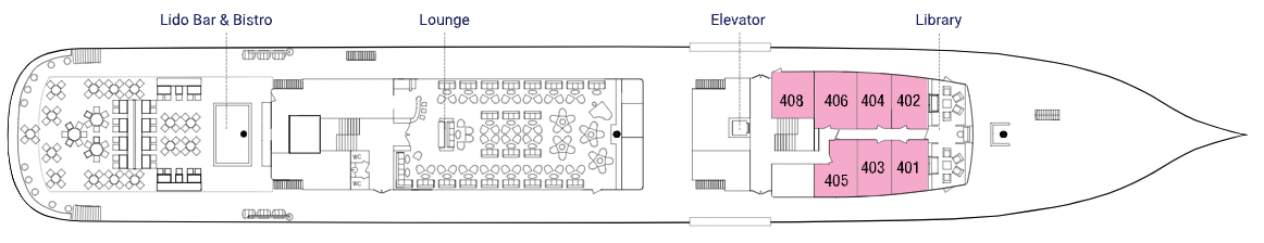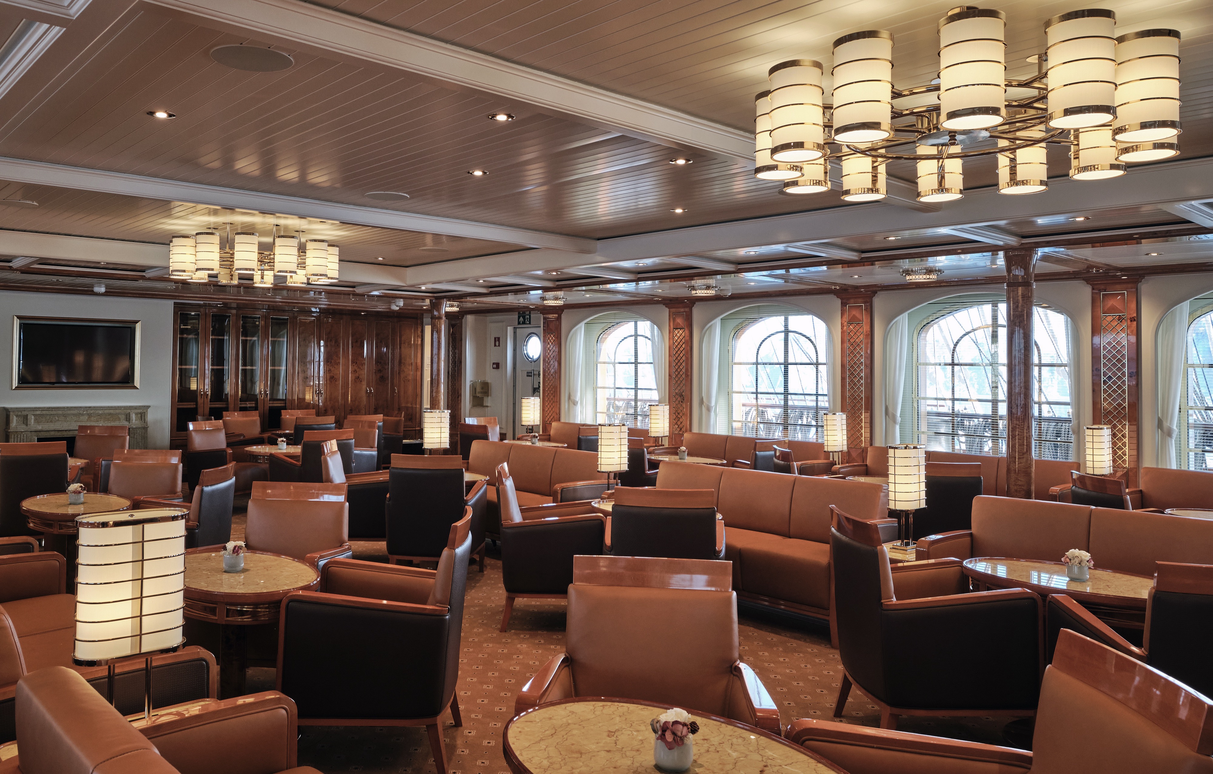 The lounge is located on the Lido Deck and is always open. This is where all lectures take place and on select sailings concerts on the Steinway grand piano. Enjoy a selection of games or just an afternoon snack.