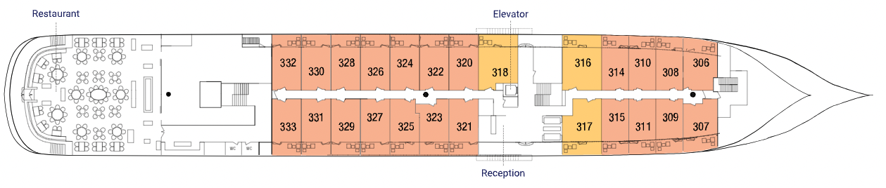 We maintain the tradition that at the beginning and towards the end of a voyage, the captain invites you to a Captain’s Cocktail, followed by a (Captain’s) Gala Dinner in the restaurant. For this occasion, we recommend elegant cocktail attire.