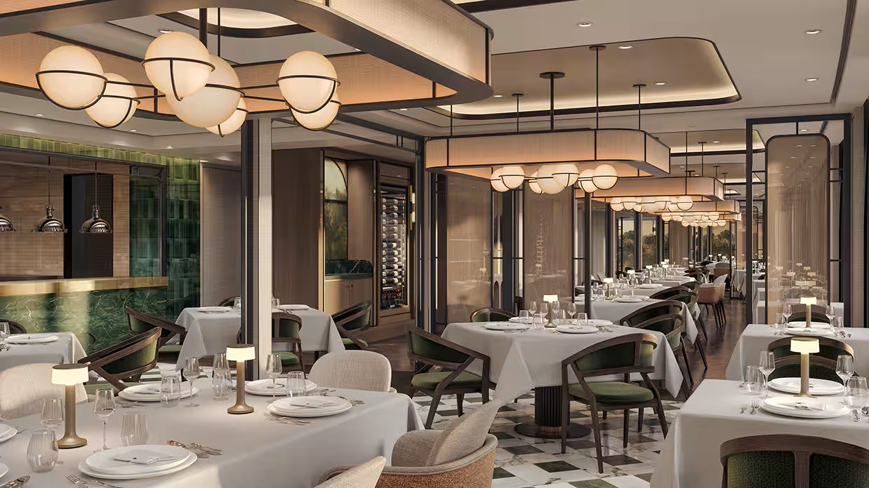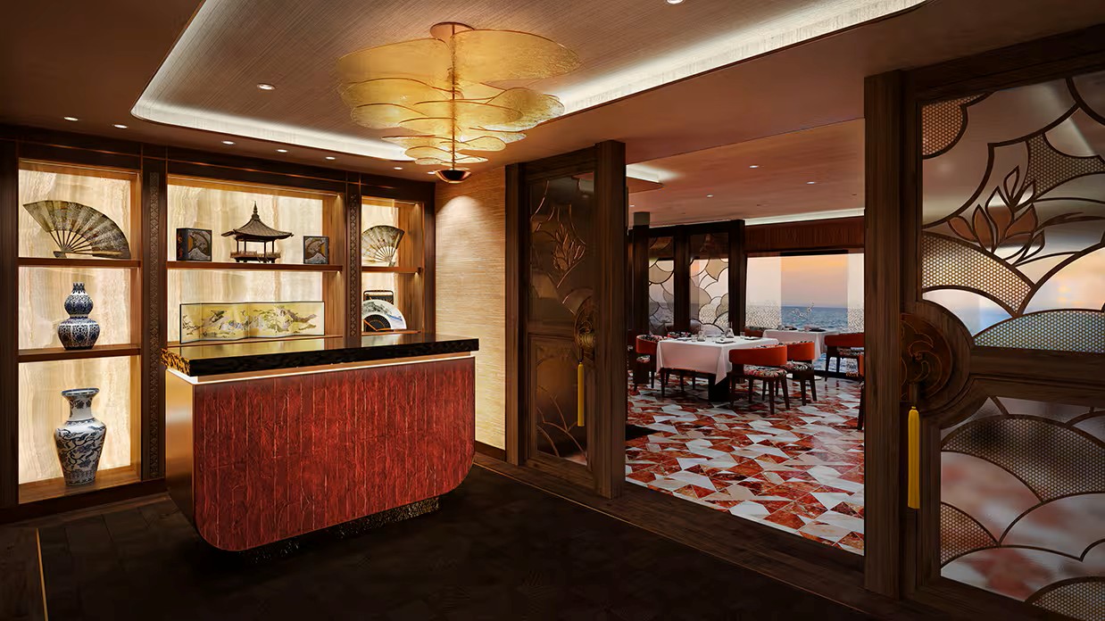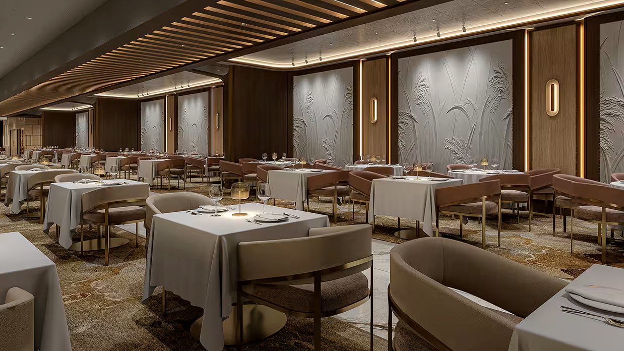 This intimate 18-seat venue honors French chefs worldwide by inviting guest chefs aboard to create menus featuring their signature dishes. Combining French an global cuisines with wine pairings and tableside preparations, it offers an exclusive, sophisticated dining experience.