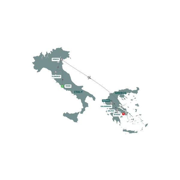 Admire the art and architecture of Rome and the rich cultural heritage of Florence. Visit the monasteries of Meteora and see the site of the most important oracle in the classical world.