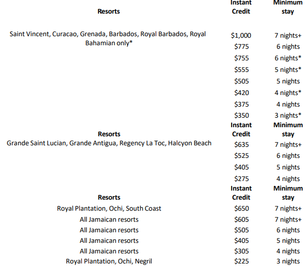 Up to $1,000 Credit + $175 Spa Credit + 1 Free Night at select resorts